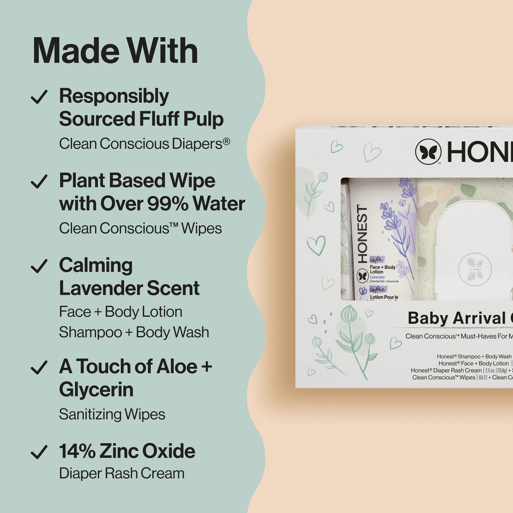 Welcome Baby! The Honest baby welcome box includes all essential must-haves for baby and parents. Add this box to your baby registry or give it as a gift at a friend's upcoming baby shower!