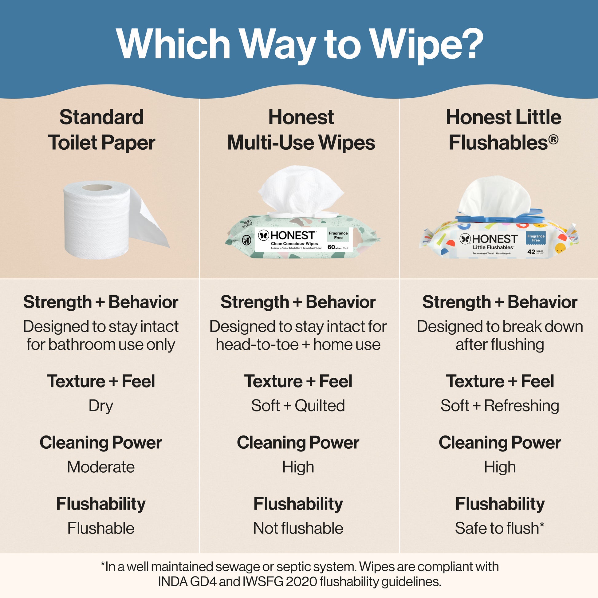 For best results, flush one wipe at a time. Do not exceed 2 wipes per flush. If a problem is noticed, dispose of in trash and stop flushing. In a pinch, these wipes can be used for quick sink + toilet cleanups.