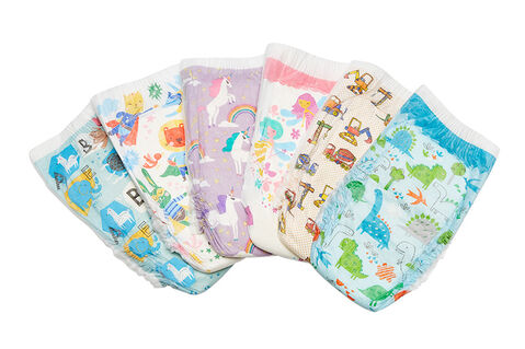 We know potty training can come with its own challenges, so we want to help make this transition as smooth as possible with our easy on and off toddler training pants. Perfect for potty training, our training pants feature an undie-like fit and have an all around waistband.